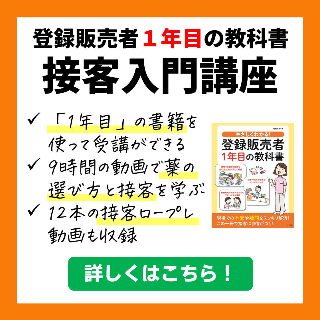 薬の説明を専門家がお客さまにするときには使わないほうが良い単語ですが、お客さまからはこれらの表現で薬があるかどうか聞かれることがあります。余裕のある人は覚えておきましょう。